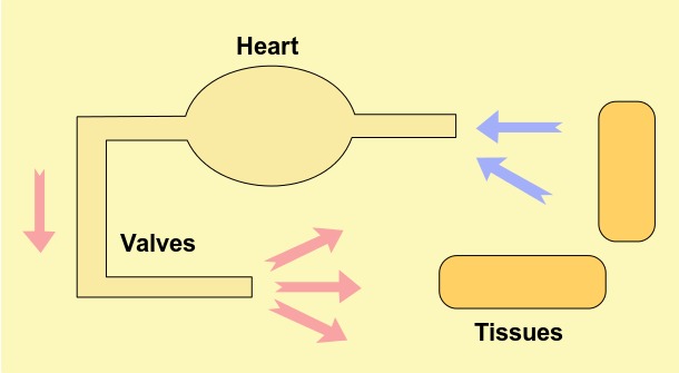 In an open circulatory system, blood vessels transport all fluids into a cavity. When the animal moves, the blood inside the cavity moves freely around the body in all directions. The blood bathes the organs directly, thus supplying oxygen and removing waste from the organs. Blood flows at a very slow speed due to the absence of smooth muscles, which, as you learnt previously, are responsible for contraction of blood vessels. Most invertebrates (crabs, insects, snails etc.) have an open circulatory system. The figure below shows a schematic of an open circulatory system delivering blood directly to tissues.