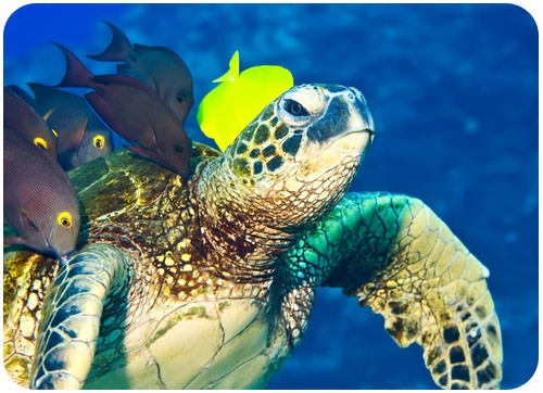 Species cannot live alone. All life needs other life to survive. Here surgeon fish are feeding on the algae growth on this turtle shell, a classic example of two species needing each other. This is an example of a symbiotic relationship.