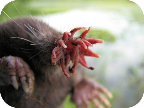This mole uses its star-shaped nose organ to sense food by touch in the dark. The mole's very large front claws are also an adaptation for its life in the soil. Can you explain why? Credit: Flickr:gordonramsaysubmissions; CC BY 2.0