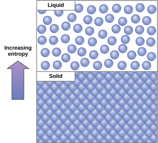 Entropy is a measure of randomness or disorder in a system. Gases have higher entropy than liquids, and liquids have higher entropy than solids. Image credit: OpenStax Biology