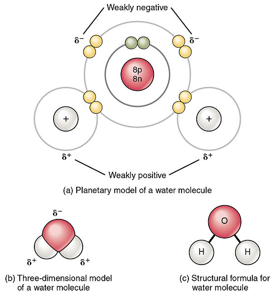 Image Attribution: "Polar Covalent Bonds in a Water Molecule," by OpenStax College Anatomy & Physiology via Wikimedia Commons (CC BY 3.0)