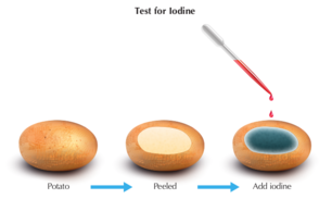 - Using the dropper add a few drops of iodine solution onto the potato or bread.