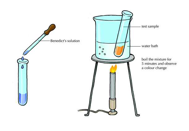 Certain monosaccharides, such as glucose, are known as reducing sugars. These are defined as sugars that can easily undergo oxidation reactions (i.e. lose an electron or gain an oxygen atom) and act as a reducing agent. In order to test for carbohydrates we typically test for the presence of reducing sugars using either the Benedict's or Fehling's test. Both solutions (Benedict's and Fehling's) contain copper sulphate which reacts with reducing sugars to produce a colour change.