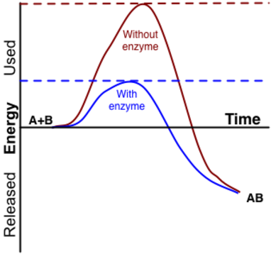 Catalyst: Enzymes speed up chemical reactions without being used up in the reaction themselves. All chemical reactions require a certain minimum amount of energy to take place. This energy is known as the free energy of activation. Enzymes lower the energy of activation thus speeding up chemical reactions (see figure below).