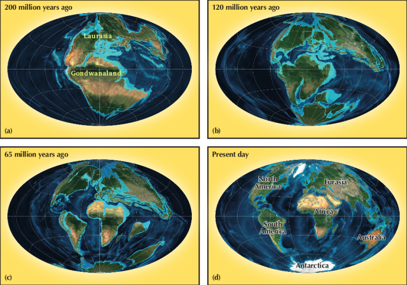 Learners do not need to know the dates involved in continental drift. These dates are only approximate and are given as a guideline and to give a sense of the time-scale.