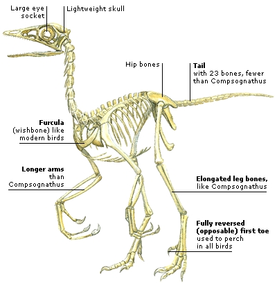 Comparing the skeleton of a modern bird (chicken) to the Archaeopteryx