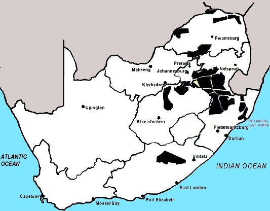 Map of coal deposits in SA: often these deposits are the sites of plant and animal fossils as they are created by the same process.