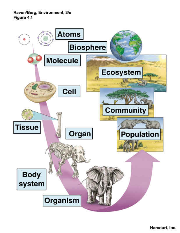 The human machine is organized at different levels, starting with the cell and ending with the entire organism (see the figure below). At each higher level of organization, there is a greater degree of complexity.