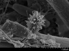 In SEM the electrons are bounced off the surface of the material and thus produce a detailed image of the external surface of the material. They produce a 3D image by picking up secondary electrons knocked off the surface with an electron collector. The image is then amplified and viewed on a screen. Examples of each of the image types produced by these microscopes are given in the figures below.