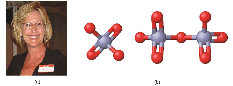 (a) Erin Brockovich found that Cr(VI), used by PG&E, had contaminated the Hinckley, California, water supply. (b) The Cr(VI) ion is often present in water as the polyatomic ions chromate, CrO42− (left), and dichromate, Cr2O72− (right).