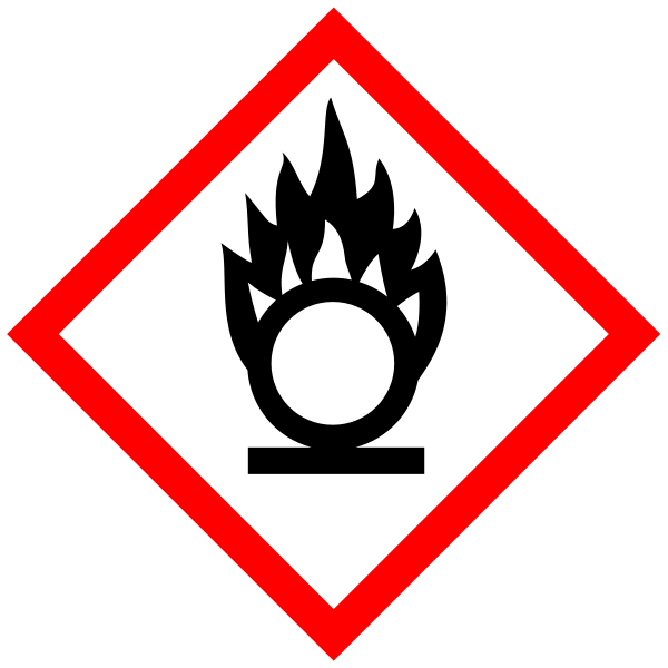 Oxidising. Chemicals with this label contain oxygen that may cause other materials to combust. An example is potassium dichromate. |