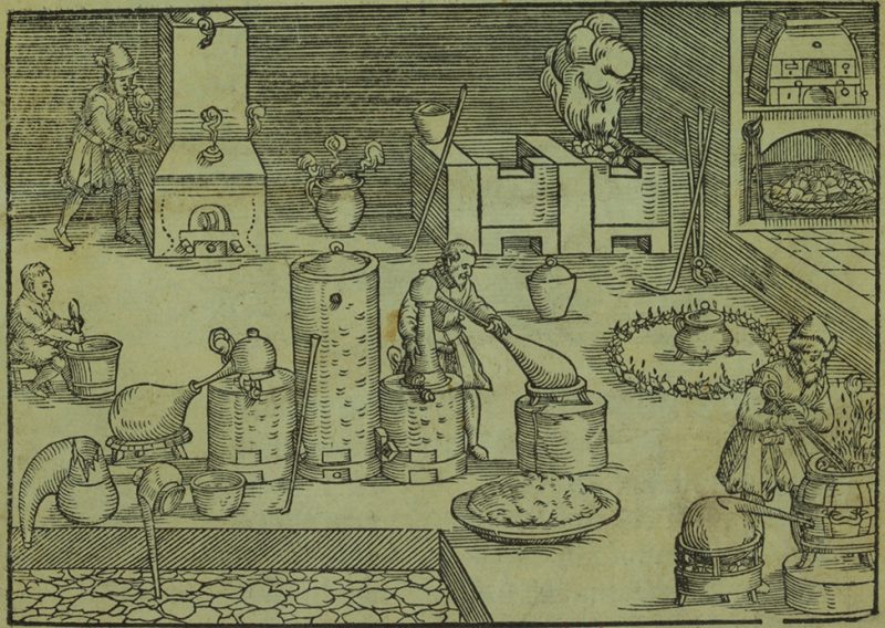 Subsequently, an amalgamation of chemical technologies and philosophical speculations were spread from Egypt, China, and the eastern Mediterranean by alchemists, who endeavored to transform “base metals” such as lead into “noble metals” like gold, and to create elixirs to cure disease and extend life (see image below).