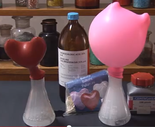 Fill a test tube with the gas formed. Light only the gas in the test tube. Keep open flames away from the balloons.