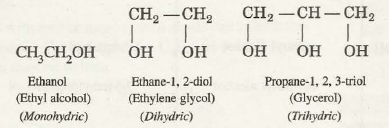 Alkanols are classified as mono-, di- and trihydric alcohols according to the number of -OH groups’ contained in their molecules. Some examples of mono-, di- and trihydric alcohols are as follows: