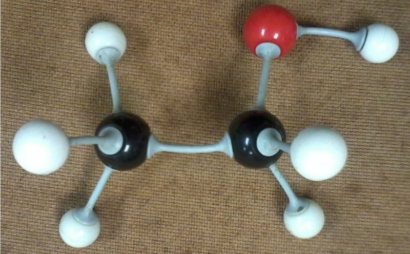 The (a) structural, (b) condensed structural and (c) molecular formula representations of ethanol. (d) An atomic model of ethanol.
