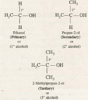Monohydric alcohols are classified as primary, secondary or tertiary alcohols depending upon whether the hydrogen group is attached to a primary, secondary or tertiary carbon atom, For example: