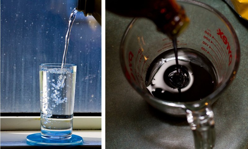 Pouring water versus pouring syrup.