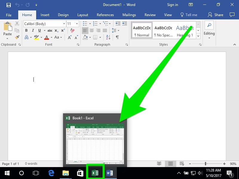 The taskbar can be very useful for multitasking. By clicking between the icons of two open windows on the taskbar, you can work in two different documents or programs at once. Move your mouse over an icon to have a preview of the other window, then click on it to switch.