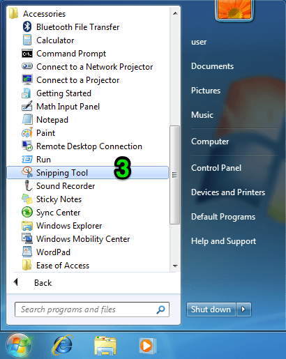 Like dialog menus, the Start menu also can use the > shorthand in instructions for navigating. For example, in Windows 7, the snipping tool is at Start>All Programs>Accessories.