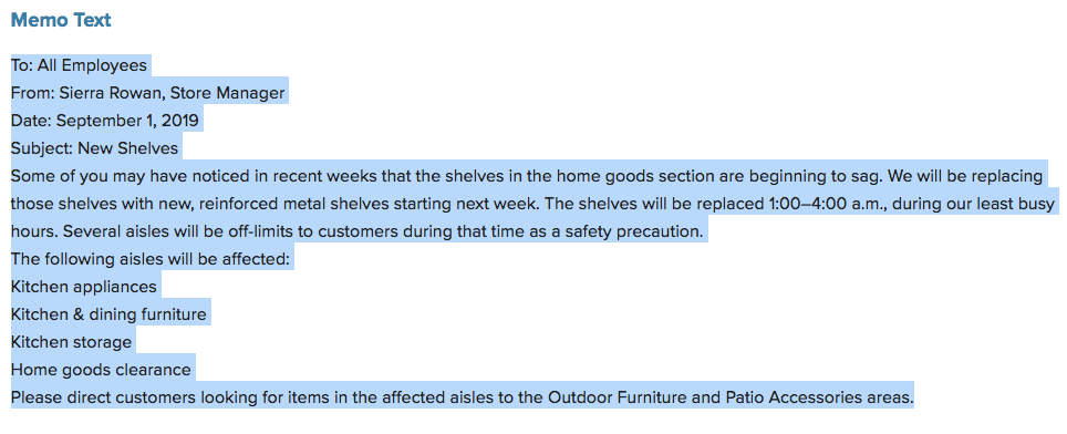 - Copy and paste the Memo Text (see above) into your Word document.