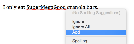 Keep in mind that adding a word to the dictionary will not necessarily add all versions of that word. For example, after adding iPad to the dictionary, the dictionary will still not recognize iPads.