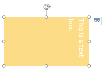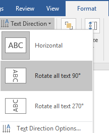 Text DirectionBy default, text runs horizontal in the text box. But you can choose to rotate the text so that it runs vertically by choosing Rotate all text 90° or Rotate all text 270°.