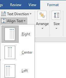 Text AlignmentText alignment of text boxes works much like text alignment in the main document. Instead of the margin or border of the page, the text aligns with the border of the text box.
