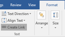The Text group of the Format tab gives you additional control of the text in the text box.