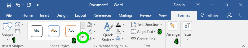 When you create a text box, a new tab will appear on the ribbon called Format. There are a lot of different tools in the Format tab, some of which may look familiar.