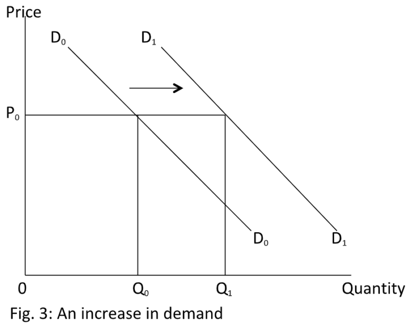 This is a situation which is due to a variation in any determinant of demand other than commodity/service own price and it is described by a shift in the demand curve for the commodity or service.