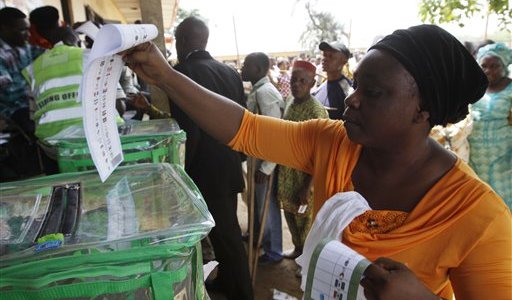 Elections in Nigeria: Each folded paper is dropped into a box.