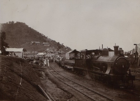 Undated British archival photo of locomotive in Nigeria