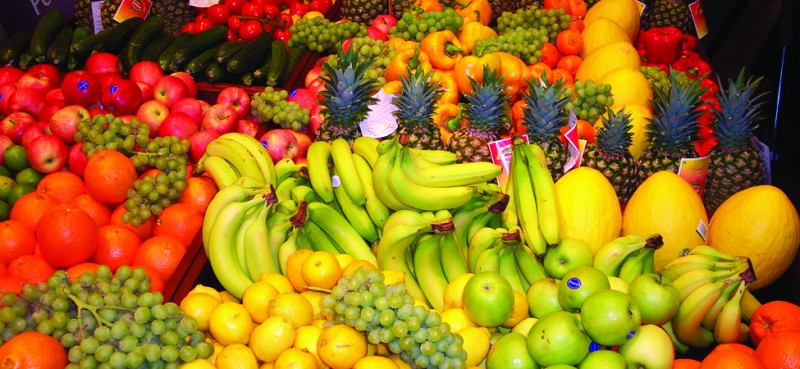 Purchasing fruits at a fruit market requires a basic understanding of numbers. Image credit: Dr. Karl-Heinz Hochhaus, Wikimedia Commons