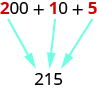 The \(\text{base}\)-\(10\) blocks model the number \(215.\)
