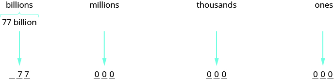 Except for the first period, all other periods must have three places. Draw three blanks to indicate the number of places needed in each period. Separate the periods by commas.