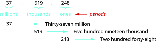 So the number \(37,519,248\) is written thirty-seven million, five hundred nineteen thousand, two hundred forty-eight.
