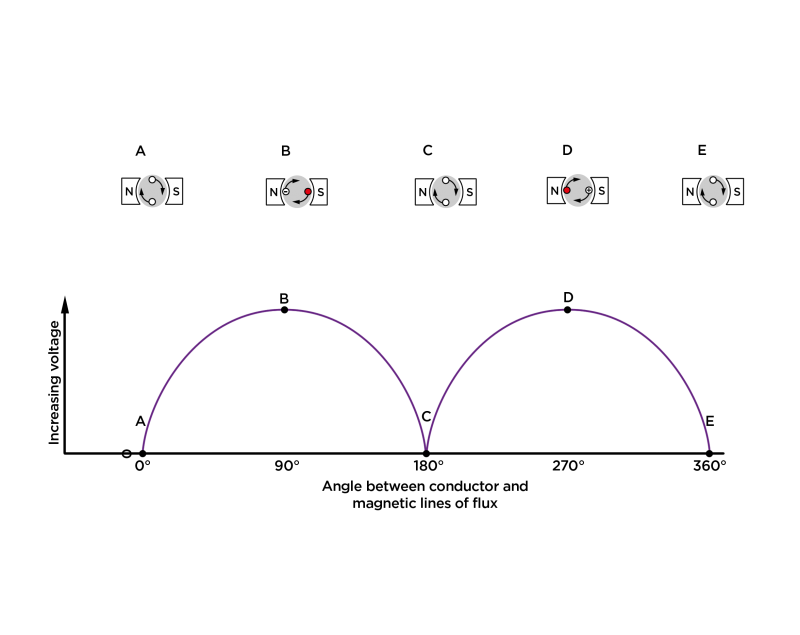 The shape of the emf from a DC generator is shown in the figure below. The emf is not steady but is the absolute value of a sine/cosine wave.