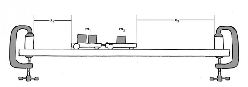 Find the mass of each trolley and place a known mass on one of the trolleys.