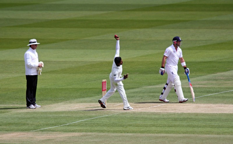 the velocity of the ball \((\vec{v}\) = \(\text{40}\) \(\text{m·s$^{-1}$}\) towards the batsman)