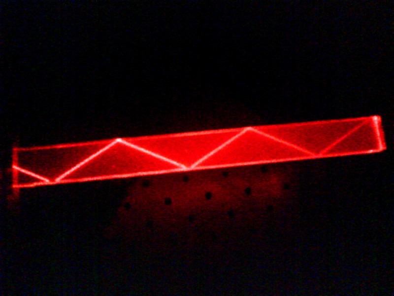 You may have noticed when experimenting with ray boxes and glass blocks in the previous section that sometimes, when you changed the angle of incidence of the light, it was not refracted out into the air, but was reflected back through the block. When the entire incident light ray travelling through an optically denser medium is reflected back at the boundary between that medium and another of lower optical density, instead of passing through and being refracted, this is called total internal reflection.